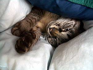 寝るのはご主人様のフトン.勝手にもぐり込んできて、腕枕で!.